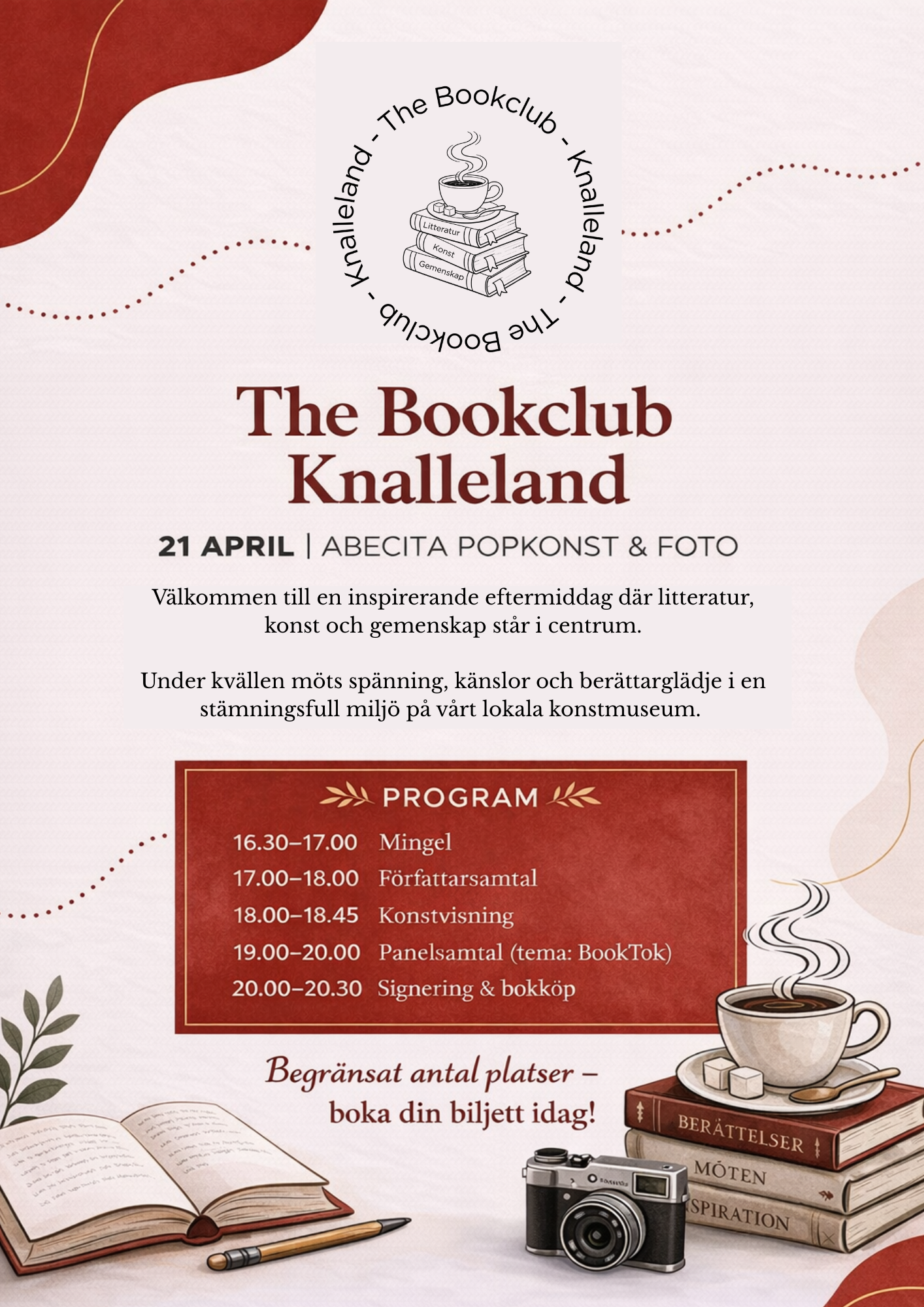 Ta chansen att delta på vårt första stora The Bookclub event, en eftermiddag fylld med litteratur, gemenskap och konst ❤️Men vet du vad? Det finns bara ett begränsat antal platser, så boka din plats idag (kostnadsfritt). Så syns vi på The Bookclub den 21 april.